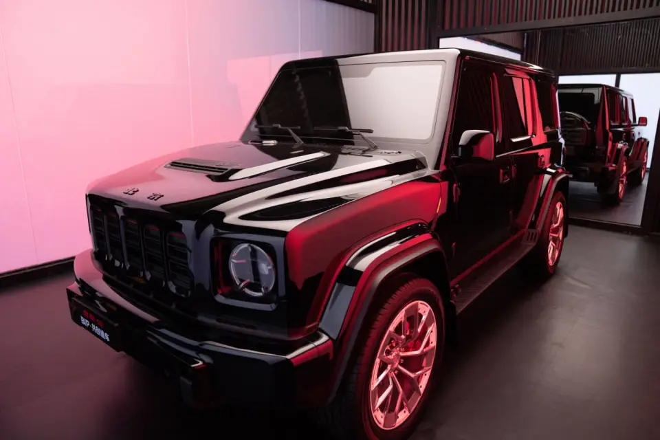 北京81,这个名字就带着一种直白的传承意味。它基于经典的BJ80打造,你可以把它理解为一位熟悉的老朋友,换上了一身量身定制的“高定户外装”。大轮圈宽胎、醒目的红色卡钳、更具攻击性的前格栅,还有那个实用的对开尾门,所有这些改装都不是花架子,而是为了强化它本就与生俱来的“方盒子”硬汉形象。它不像坦克700那样充满未来机甲风,它的设计语言是向历史致敬的“复古硬派”,追求的是在经典轮廓下的质感精修。这种风格,对于迷恋“大G”式传统越野造型,又觉得奔驰门槛太高的人来说,有着天然的吸引力。