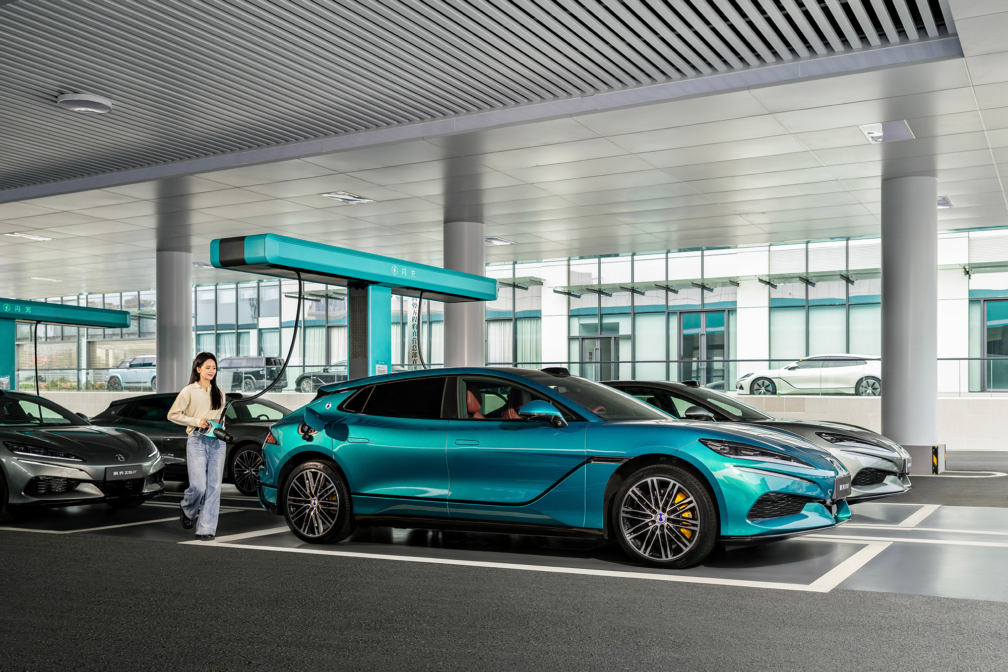 大家都知道,普通快充桩的功率大概在60到120kW之间,腾势这套配套设施,直接是它们的十几倍。