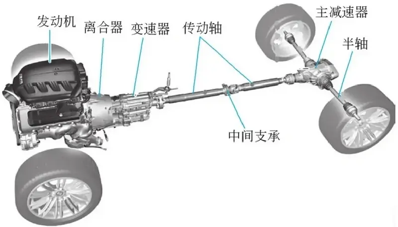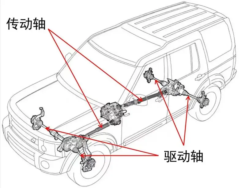 驱动轴:将动力从变速器传递到车辆的驱动轮上。