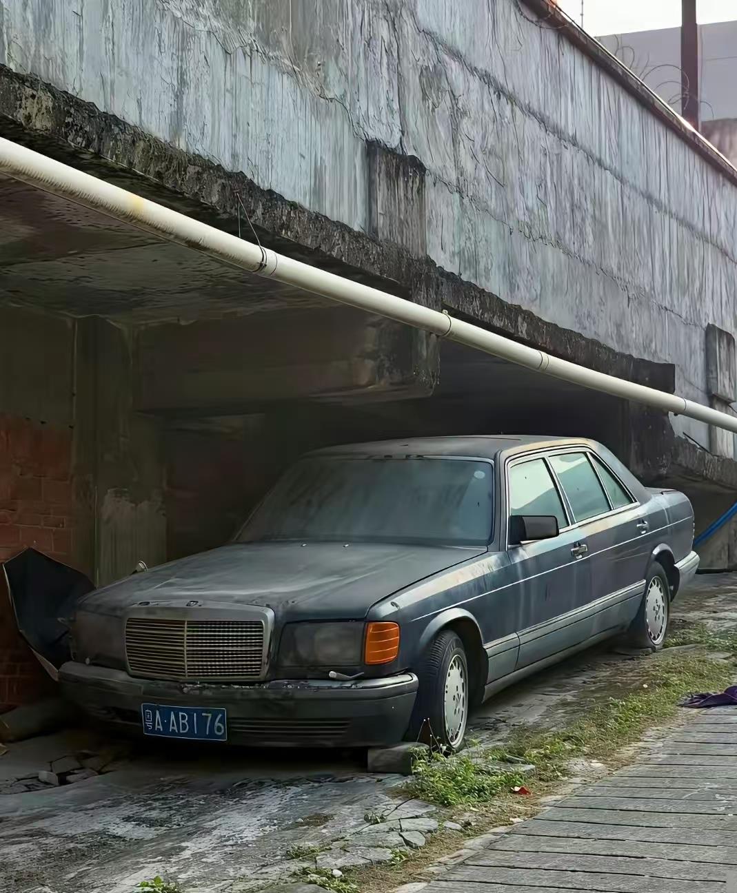 再看车型——老款奔驰SEL560。有网友直接在评论区说了:这车少说也得三十多年了,“放了20年”只是它待在桥底的时间,不是它的全部年龄。这车当年在国内的售价是个天文数字,而且就算你想买,也不是随随便便就能买到的。有网友专门提起,自己曾经开过一台同款SEL560,在深圳某立交上追尾了一辆货车,修车就花了将近18万。18万,放在当年,不是小数目,足以说明这辆车在那个年代是什么级别的存在。