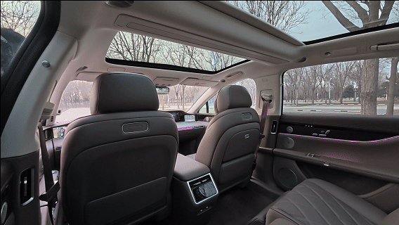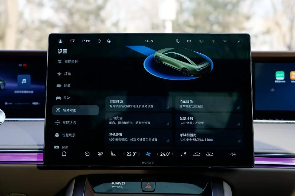 当你用手机蓝牙钥匙解锁,坐进驾驶舱,这份“价值清单”的核心优势才开始真正展现。内饰是极简风格,但最夺眼球的是那块一直延伸到副驾前方的超长一体式屏幕。鸿蒙座舱的流畅体验和生态丰富度,是目前车机系统的天花板级存在。更关键的是细节:比如副驾的“零重力”座椅、全车标配的通风加热按摩、高配车型上的投影巨幕和车载冰箱。它把新势力“彩电冰箱大沙发”的顶配逻辑,与华为底层的智能科技,毫无违和地整合进了一台行政级轿车里。相比之下,这个价位的BBA车型,车机流畅度和功能创新性,多少显得有些“传统”了。