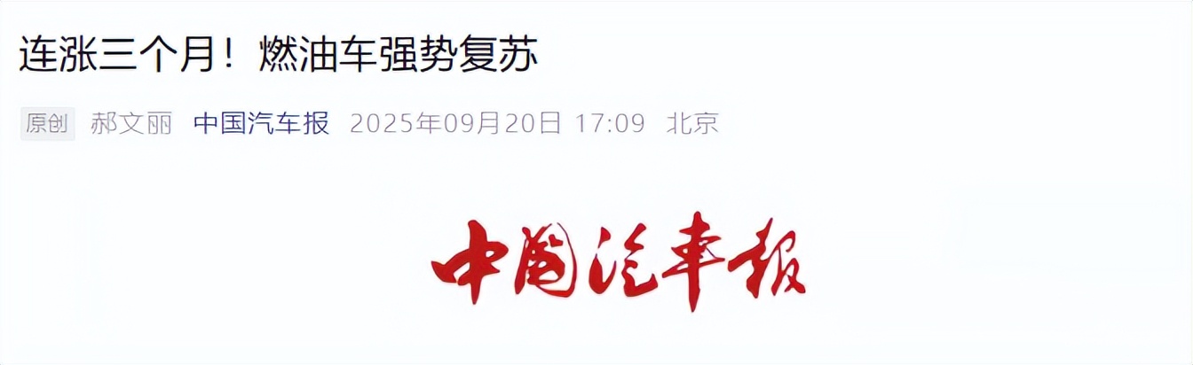 另外一边8月份也是油车销量的第三个月增长,在今年油车销量已经出现了连续三个月正增长的情况。在九月底的时候,还发生了一件大事,给国内一众油车着实打了一波气。