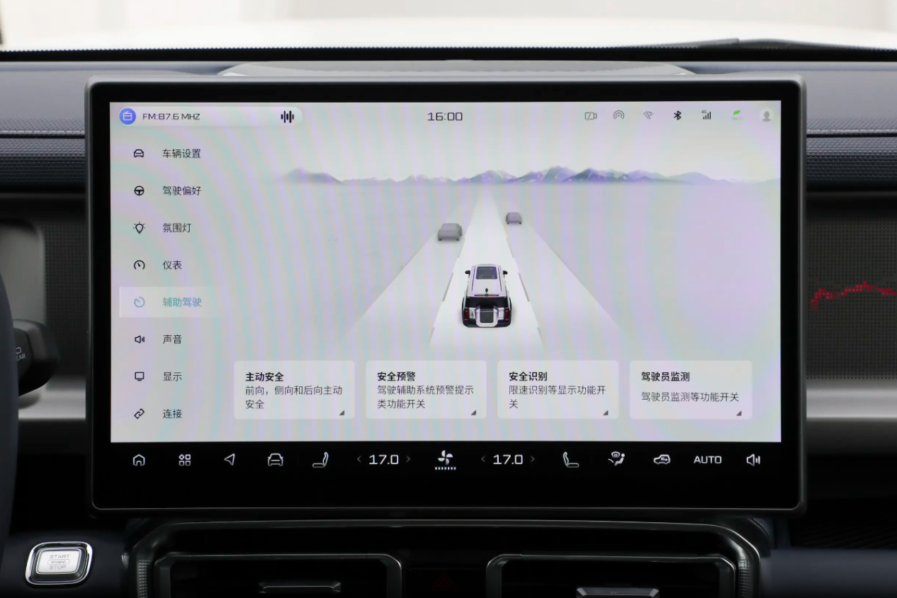 聊完了车外咱们再坐进车内,中控造型也还是我们熟悉的样子,和此前在售的捷途旅行者保持一致。而作为一台硬派风格SUV,其亮点莫过于随处可见的越野元素,比如车内车门、副仪表台、A柱以及顶篷处有着多个扶手设计,让乘客在越野场景下能够有更多支撑。不过,新车也没有忽略科技感营造,15.6英寸中控屏内置8155芯片,且配备科大讯飞星火智能AI大模型,人车交互体验说是业内主流水平一点不过分。此外值得一提的是,L2级辅助驾驶系统也没有缺席,APA全自动泊车辅助让大家无需担心车身过大。