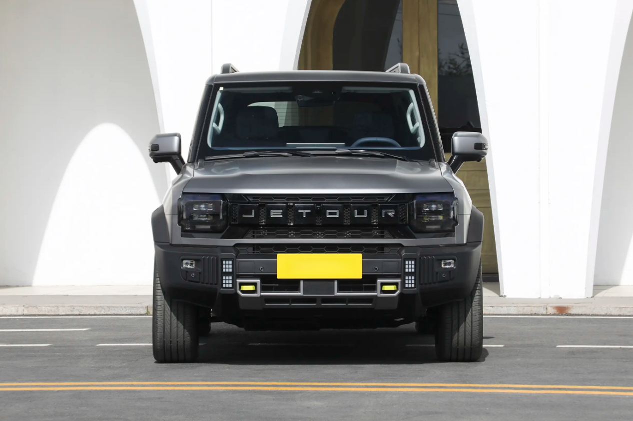 既然价格没什么问题,咱们紧接着再看设计,捷途旅行者PLUS和捷途旅行者PLUS C-DM依旧是采用复古硬派的造型,这种标准的“方盒子”风格在越野车市场很受欢迎,况且该车系预售后取得不错成绩的原因多半是颜值够高。比如从车头我们可以看到,孔武有力的格栅搭配方形灯组,下方则是宽厚的黑色塑料包围,细节处再有黄色拖车钩与越野辅助灯点缀,让其更具辨识度。再者就是新车作为加长版,车长已经超过5米,车宽也超过2米,这样的体格也是气场提升的关键所在。