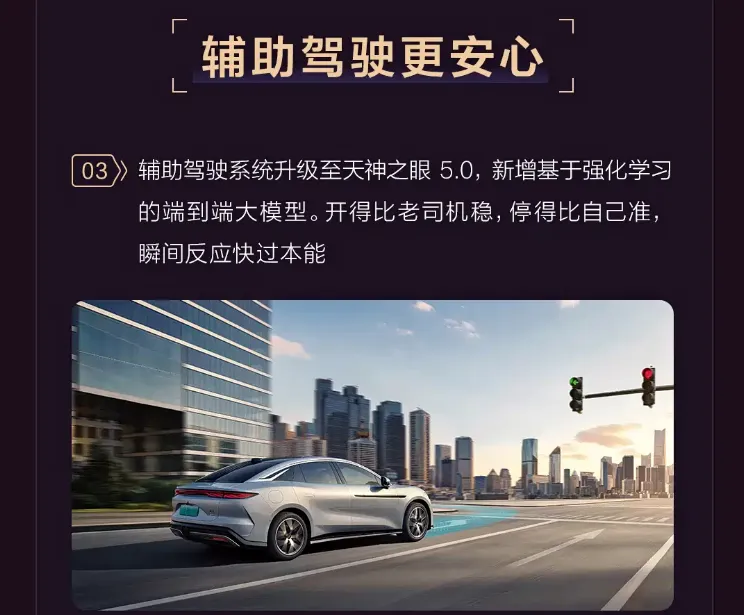 先说说这次升级的硬菜——“天神之眼5.0”高阶智能驾驶辅助系统正式推送。这可不是简单换个名字,而是实打实地提升了在高速和城市快速路上的感知决策能力,开起来更像老司机了。更让我觉得贴心的是,它居然新增了“云服务除雪除霜”和“驾驶辅助节能模式”。