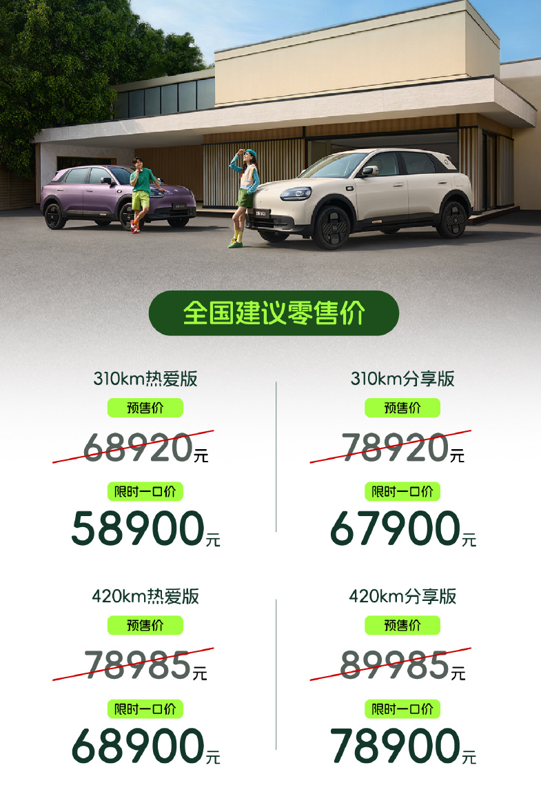 回到定价这件事。限时起步价5.89万,相比预售价最高降了1万出头,叠加最高价值2.6万元的限时权益,还是很不错的。