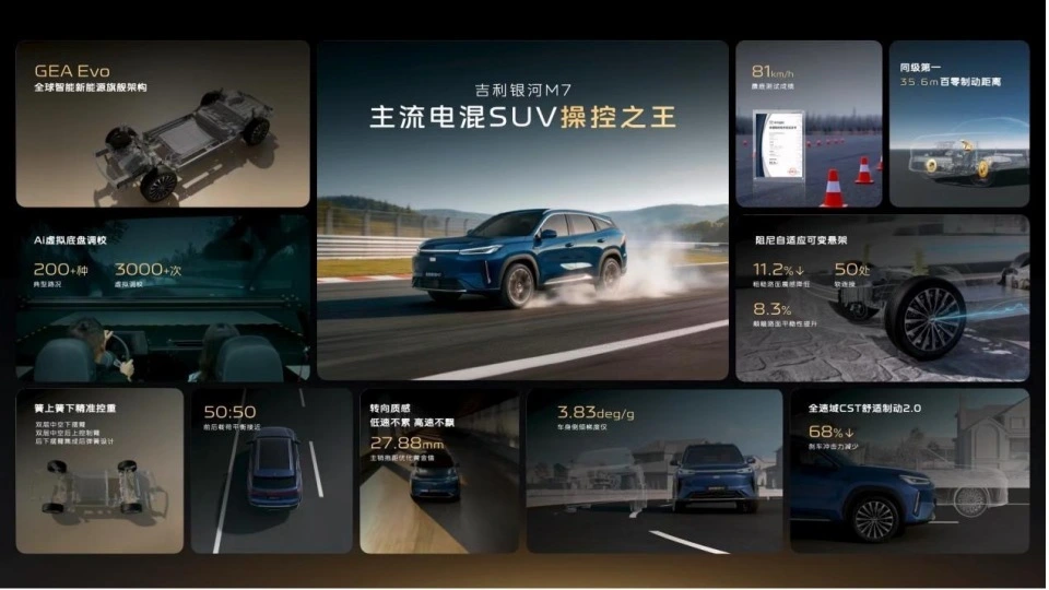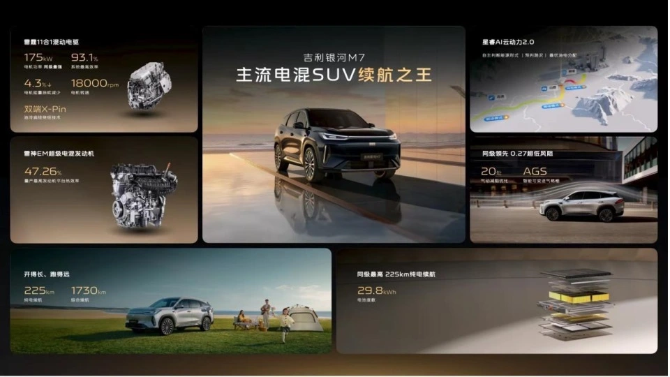 老铁们,家用插混SUV圈要变天了!吉利银河M7实车正式首发,堪称“续航卷王”,满油满电综合续航干到1730km,纯电续航也有225km,预计10万级起售,4月内就上市,直接叫板比亚迪宋Pro DM-i,妥妥的“家用插混颠覆者”。很多老铁选家用插混SUV,就怕续航短、跑长途焦虑,要么嫌油耗高、用车成本贵,要么嫌空间小、不够用,这台银河M7直接一次性解决所有痛点,长续航、低油耗、大空间,不管是日常通勤,还是全家长途自驾,都能省心又省钱。