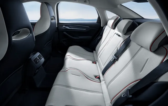 内饰主打实用简洁,科技感与舒适度兼顾。环抱式座舱设计,大面积软性材质包裹,质感在线。10.1英寸悬浮中控屏+8.8英寸悬浮仪表盘,搭配DiLink 100智能座舱,操作流畅,语音控制响应快,导航、空调一句话搞定。全系标配电子怀挡,释放中控台空间,储物更方便。皓月米、玄武灰两种内饰配色,后排4/6放倒+中央扶手,家用出行灵活又舒适。