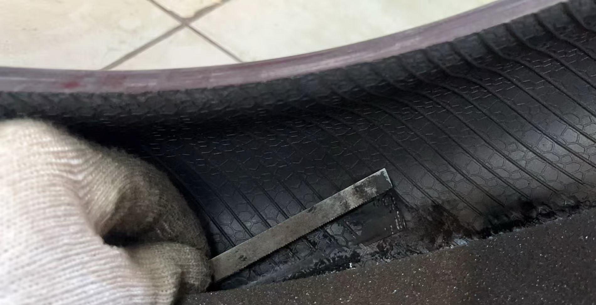 师傅说你赶紧过来看看吧。等我到了修理厂,亲眼看见那根钢锯条从轮胎里被取出来的时候,整个人都愣住了。那是一根大概七八厘米长的钢锯条,锯齿还带着锈迹,就这么安安静静躺在轮胎里面。师傅指着轮胎内壁给我看,说钢锯条在里面滚了三个月,已经把轮胎内部的帘子线全给割断了,整条轮胎的骨架结构都废了,为了安全起见,必须换新的。