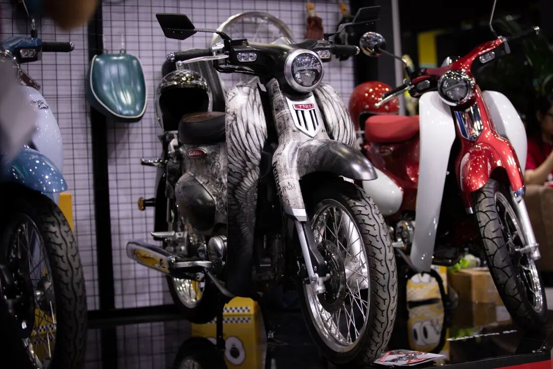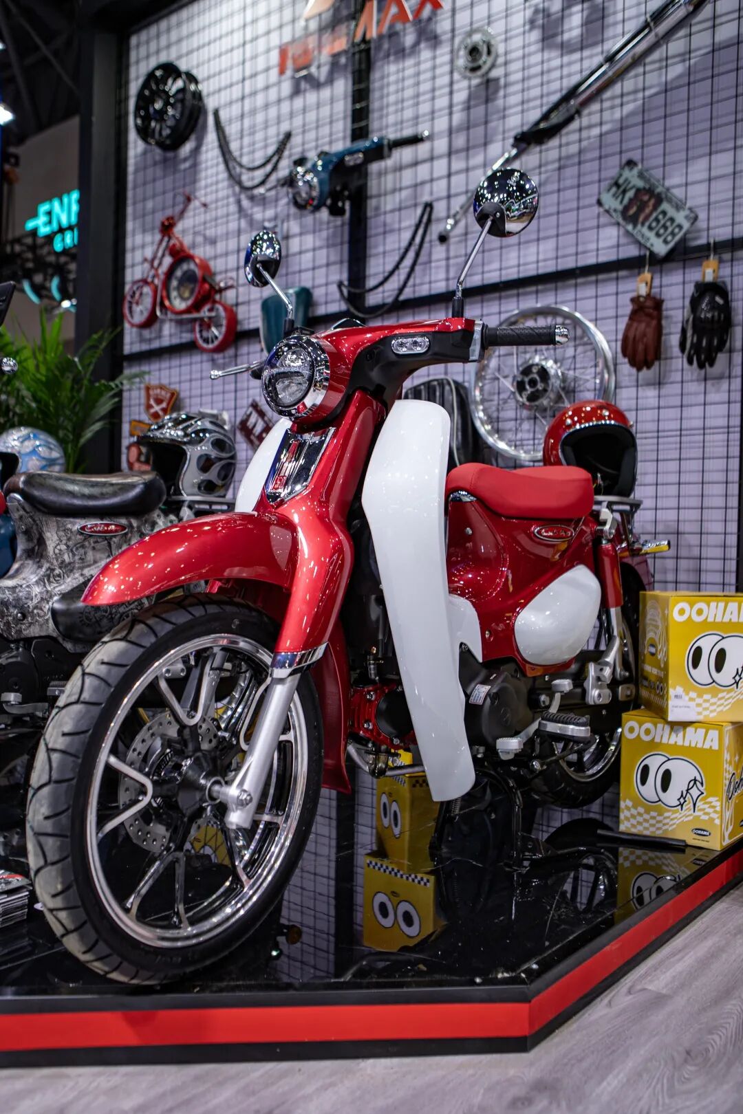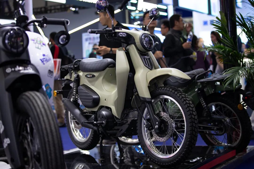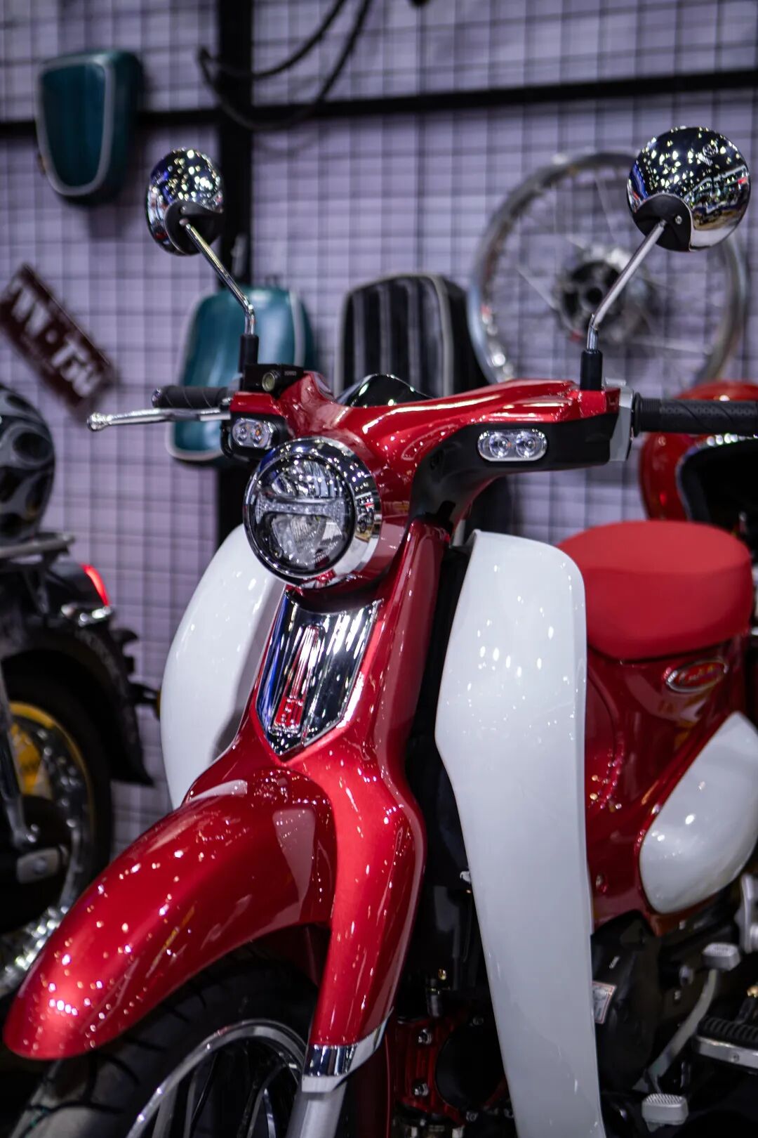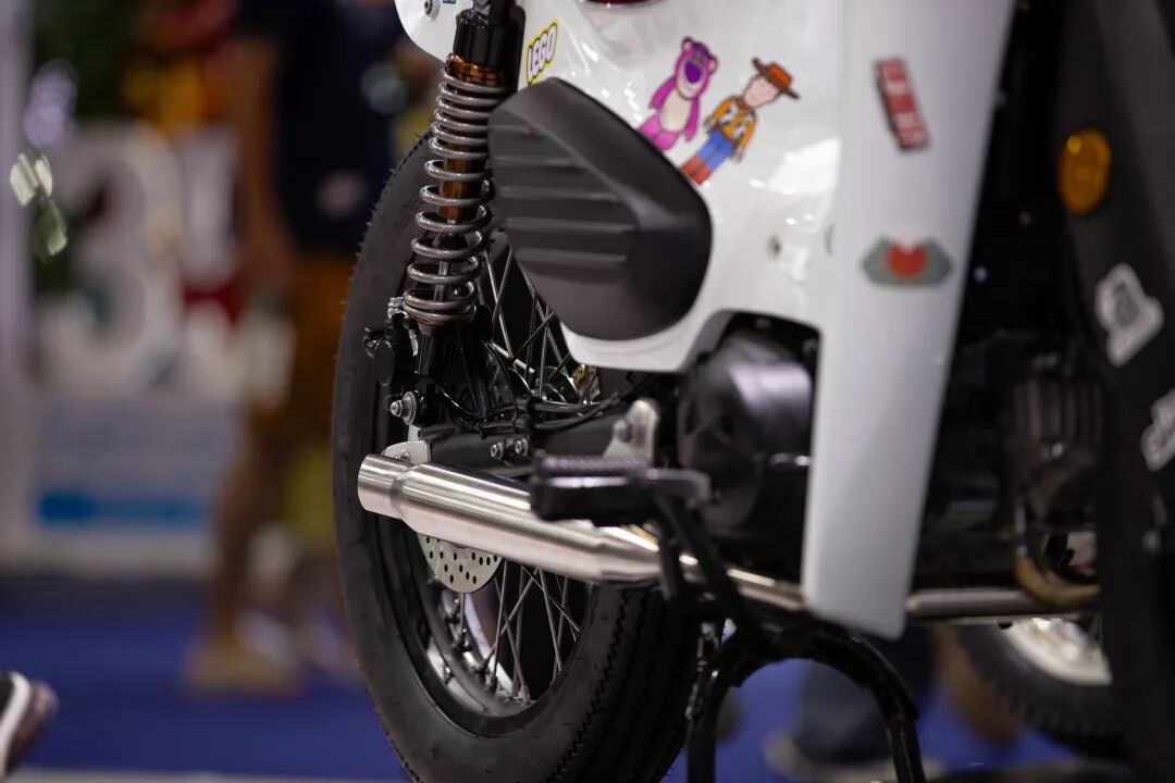 不止125版本,KAMAX还布局了多个排量版本:50cc蓝牌版、110cc经济版,以及两款150cc车型和一台电动Cub EV,选择相当丰富。尤其让我个人印象深刻的,是那台越野设定的Cub X 150cc,长行程减震、高离地间隙、带ABS+TCS,甚至原厂就配了护杠和防护装甲,全车多处镀铬件都经过9级镀铬处理,所以在细节上的呈现很是细腻。看得出来,它不是那种只停留在“样子货”层面的车型。