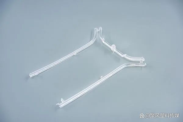 在注塑行业,光导件的生产需兼具光学性及精密性双重高要求,一直以成型难度高,制品要求严苛而著称。导光条的成型原料,如PC、PMMA等,粘度大,对水分敏感,光导透光质量要求高,需要满足透光性、热稳定性、形状精度、表面光泽度、雾度等严苛的光学标准。因此,车灯光导产品在生产注塑过程中,对工艺及稳定性有着严苛的要求,否则极易造成产品缺陷。此外,车灯光导的模具一般比较厚,容模量要求高,且填充量并不大,因此,合适的模架和注射当量组合也是技术难点之一。