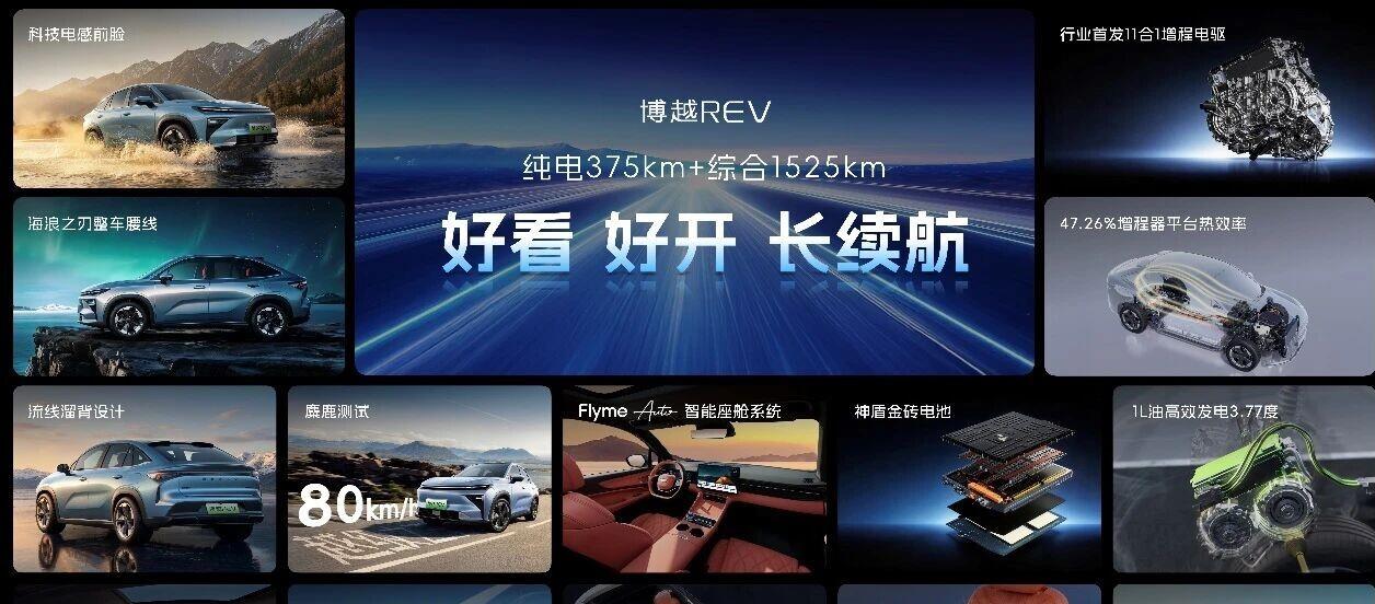 道理很简单。以前大家比的是200公里级别的纯电续航,博越REV直接把这个标准拉到了375公里。消费者不傻,同样的价钱,谁不想买续航更长的?而且吉利用的还不是什么杂牌电池,神盾金砖电池的安全测试结果摆在那,3C快充也给了,FSD悬架也给了,Flyme Auto车机也给了。