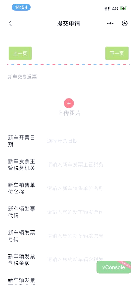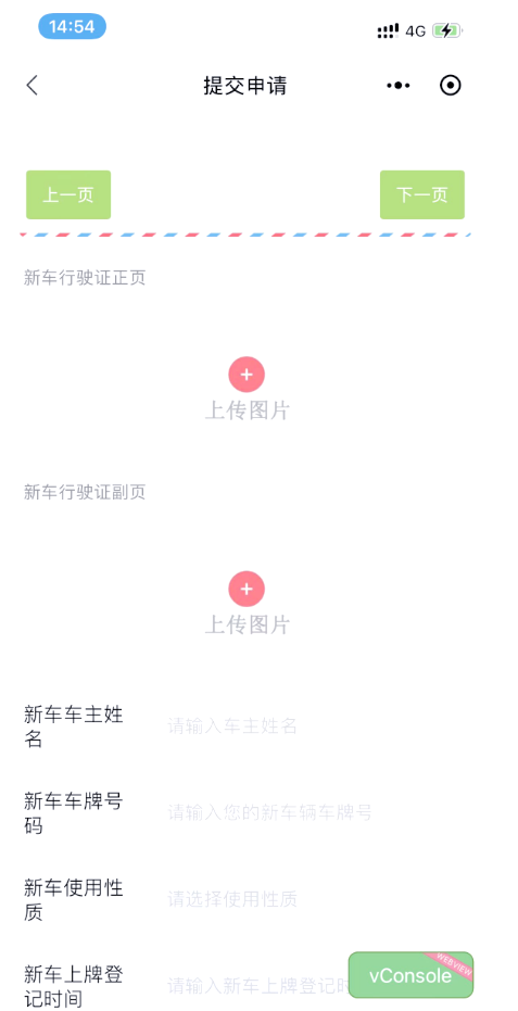 经过OCR技术抓取信息,消费者需仔细核对所提供的新车销售统一发票、行驶证正页及副页的照片,确认无误后即可进行提交。