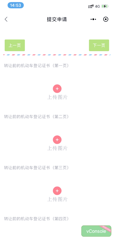 第六步:消费者需上传旧车机动车登记证书的第1至第4页的照片,以完成申请流程。