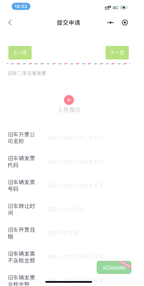 第五步:消费者需上传二手车销售统一发票的照片以继续申请流程。