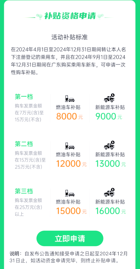 近期,不少车友纷纷咨询关于韶关市汽车置换更新补贴政策的申领事宜,诸如“何时可以申请?”、“申请地点在哪里?”以及“如何提交所需资料?”等问题。别担心,好消息来了!自9月13日18:00起,2024年韶关市汽车置换更新补贴的申领平台已正式上线。接下来,我们将为您提供一份详尽的操作指南,助您轻松换购新车并领取补贴。