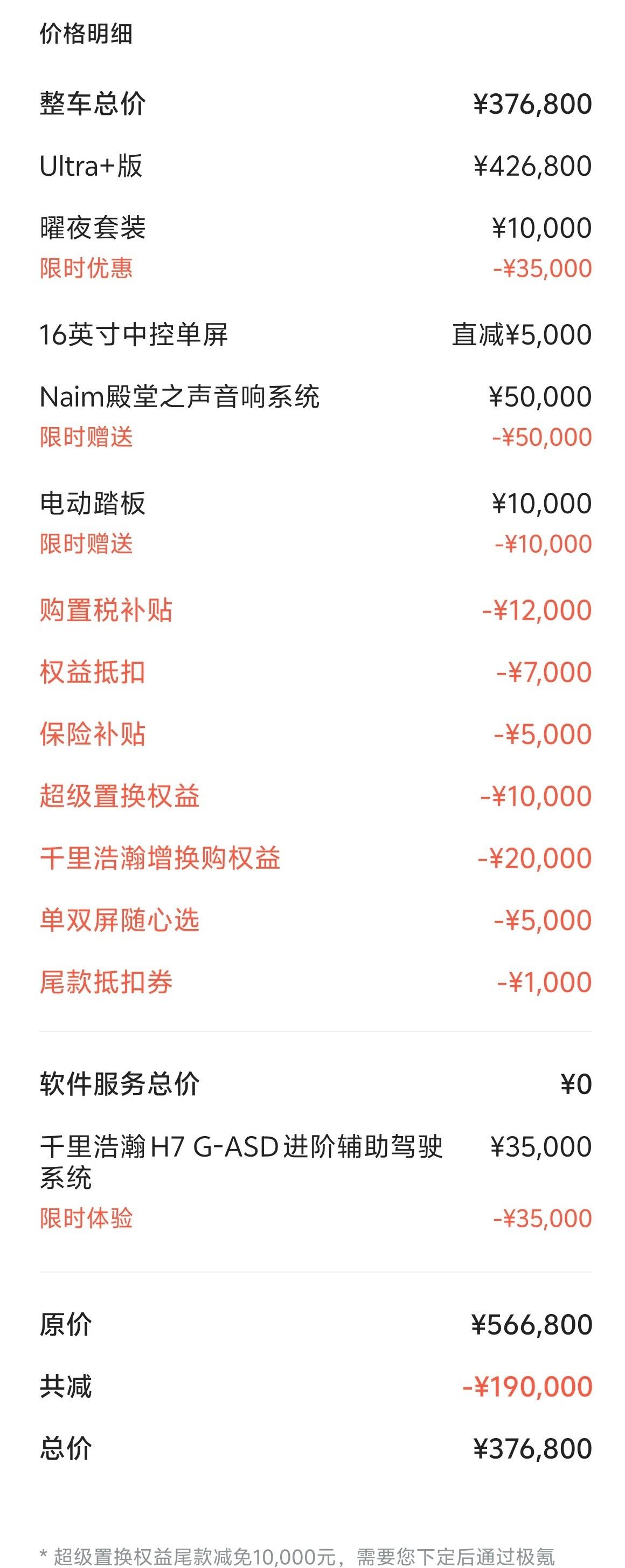 就在4月17日,极氪8X正式上市。说实话,这车从预售开始就把我拿捏得死死的。37.68万起,限时权益价还能再便宜点。我盯上的是Ultra+,42.68万的指导价,权益后39.98万。但我选配了一些东西,最后落地37.68万——别问我怎么做到的,反正就是销售说“哥,这个配置现在有活动”。