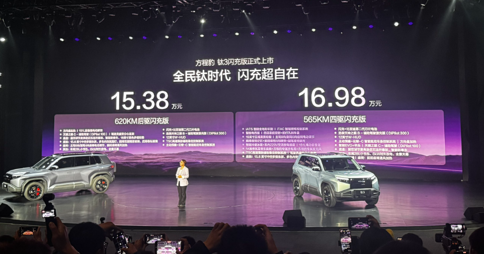 但3月13日这天,比亚迪方程豹钛3闪充版上市,让我第一次觉得,这块遮羞布,可能真的要被扯掉了。