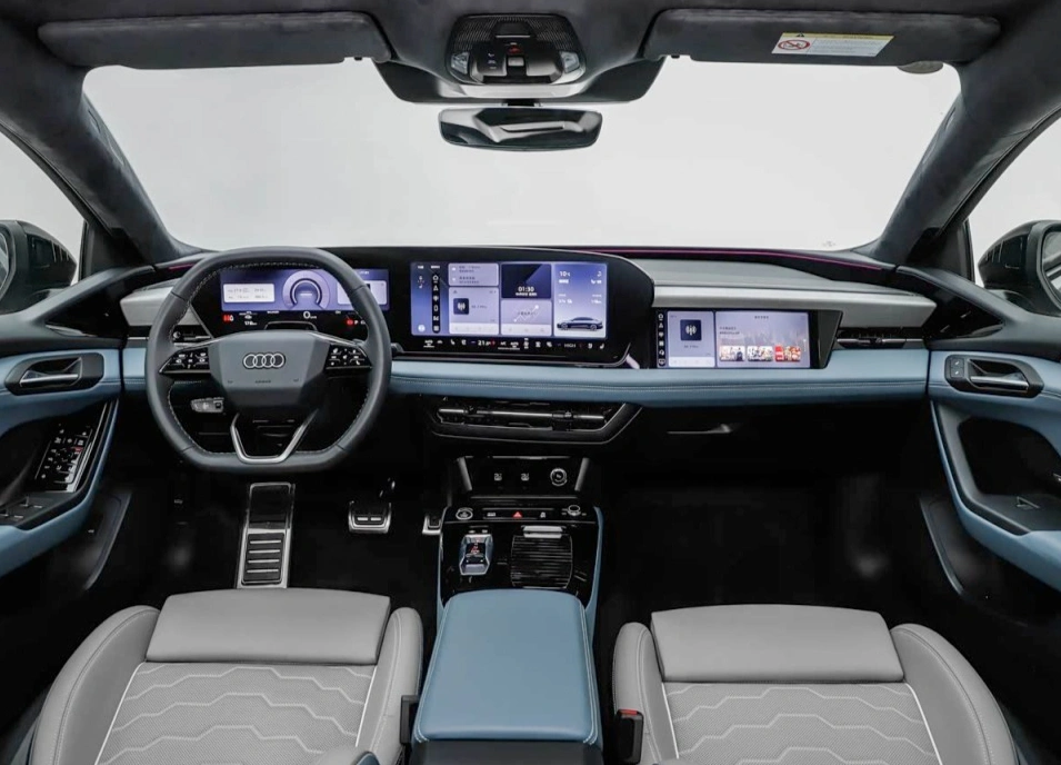 内饰与智能配置,是A6L e-tron“豪华平权”的直接体现。88英寸AR-HUD、11.9英寸OLED虚拟座舱、14.5英寸OLED中控屏、10.9英寸副驾娱乐屏,组成五屏联动生态,交互流畅、显示细腻。全系标配17扬声器B&O音响、主动降噪、九分区全景天幕、四温区空调,中国专属座椅前排加厚18mm、后排坐垫加长16mm,乘坐舒适性比肩40万级车型。