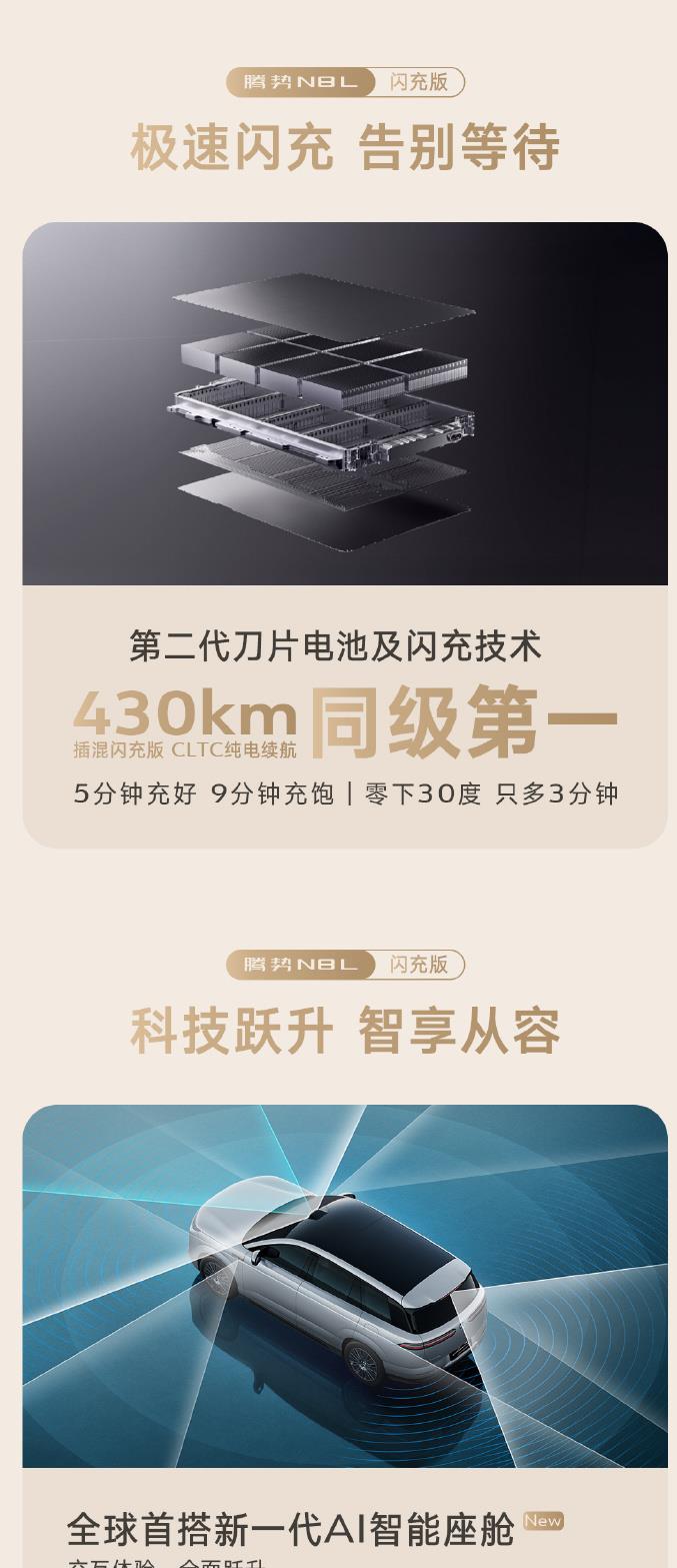 腾势N8L闪充版预售,35万起,续航430km同级第一,充电仅需5分钟