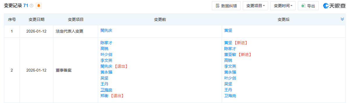 近日,天眼查显示,广汽传祺汽车有限公司(以下简称“广汽传祺”)发生工商变更,閤先庆卸任法定代表人、董事长,由黄坚接任,同时,董亚敏出任董事。