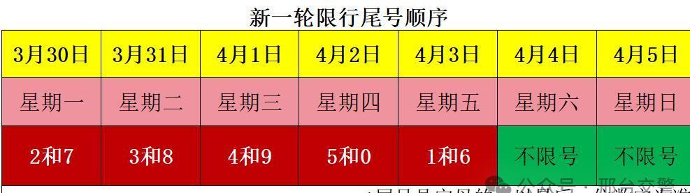 你有没有过这样的经历?早上着急上班,打着火就往市区冲,结果到了路口发现满大街的车就你这一辆被交警拦下来。低头一看手机,哦豁,限行!再一查日历,好家伙,原来昨天还是限3和8,今天轮换到2和7了,你正好是7。100块钱没了,还得记3分。这不,3月30日(周一)起,邢台市机动车尾号限行新一轮轮换期正式开始了,这次可不是闹着玩的,限行规则和北京完全同步,一直持续到6月28日。