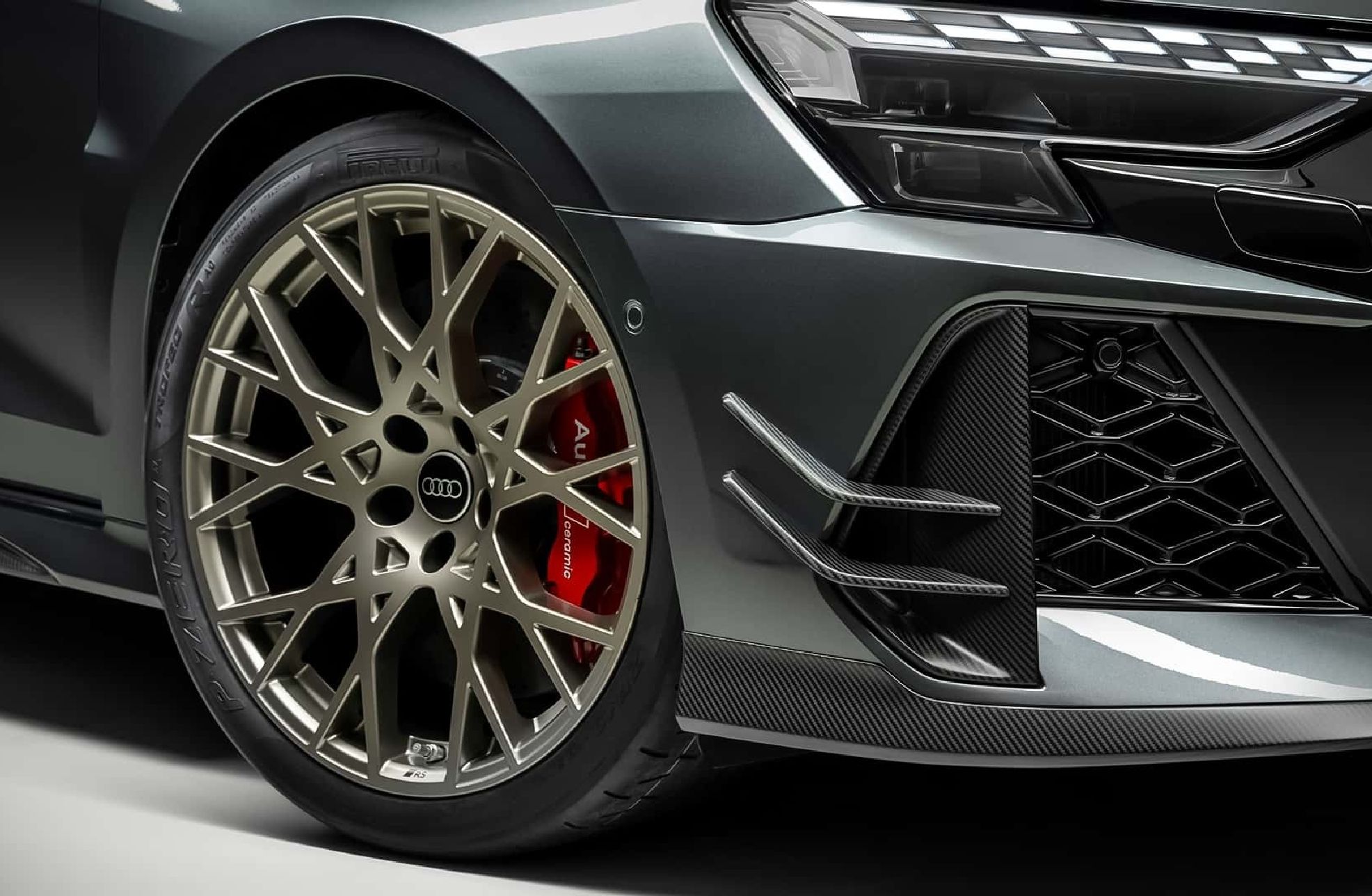 底盘层面,三向可调绞牙避震器首次出现在 RS 3 上,支持高低速压缩与回弹独立调节,同时后防倾杆也加粗了。