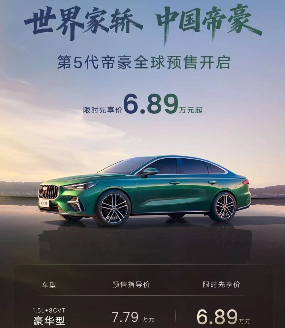 大家好,我是隔壁老王,今儿得好好唠唠刚开启预售的全新第五代吉利帝豪,这货限时先享价6.89万起,尺寸整整大了一圈,媲美沃尔沃S60,不仅轴距加长到2755毫米,还换上了133千瓦的1.5T发动机,更带Flyme Auto智能座舱,摆明了要在10万内家用轿车市场跟长安逸动、比亚迪秦PLUS抢饭碗,普通家庭购车这下又多了个真香选择。