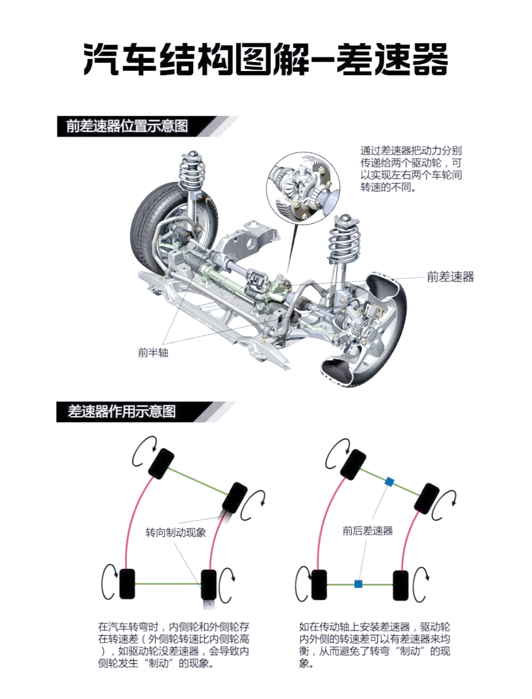 可以这样理解:它是一种专门设计来调整左右车轮转速差异的装置。其核心作用在于将发动机输出的扭矩等量分配给左右车轮,从而允许在转弯或行驶在不平路面上时,两侧车轮能够以不同的转速进行滚动。这一特性确保了驱动车轮能够纯滚动,即无滑动地行驶。