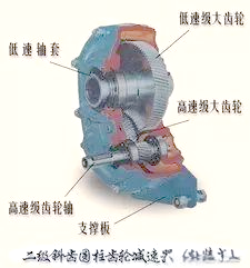 ▲二级斜齿圆柱齿轮减速器(轴装式)