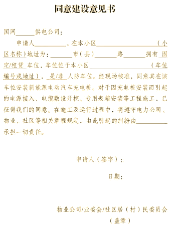 最后,获得物业许可。您需要向小区物业提出申请并获得同意安装充电桩的证明。有些小区可能提供统一的申请模板,您只需填写并盖章;若没有模板,则需自行书写一份证明,说明您有权在该车位安装充电桩,并由物业加盖公章。