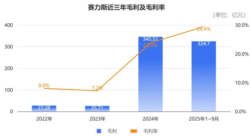 更加让人惊艳的还是不止营收,问界系列给车企创造的利润,更是让人震惊,2022年的时候,整个车企的毛利率只有8%,而到了2025年前三季度的时候,其毛利率已经达到了29.4%。