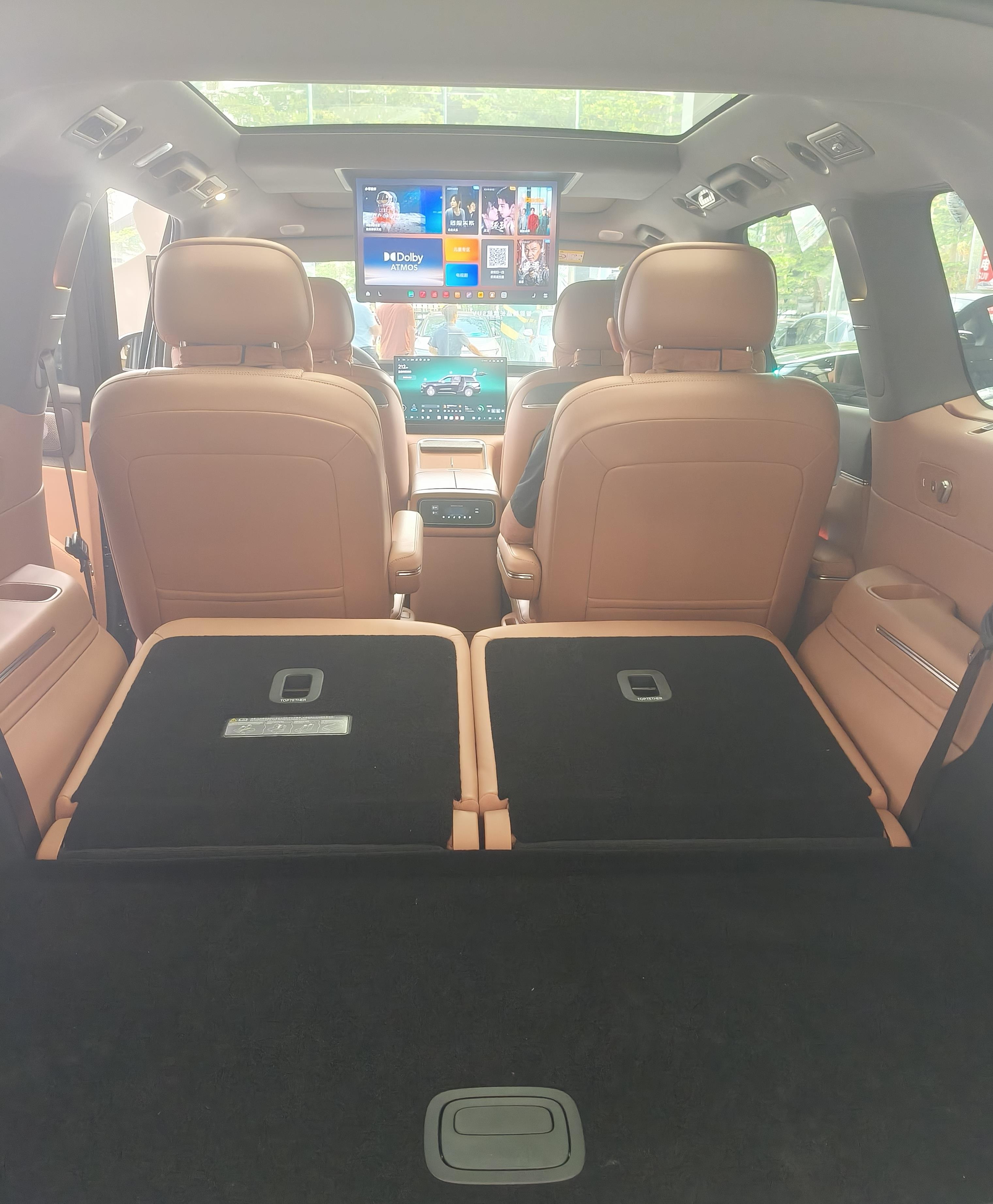 说到空间,D19是真的让我满意。5252毫米的车长、3110毫米的轴距,88%的得房率,第三排是真的能坐成年人。我去试驾的时候特意让销售坐在第三排,我1米75的个子,膝盖离第二排座椅还有差不多两拳的距离,这在六座SUV里可不多见。很多车的第三排就是“蹲狗”的,D19这个是真的能坐人。前备箱也够大,176升,六个人出游的行李能装得下。后备箱放倒第三排后进深有1.8米,我目测能塞下两台折叠自行车。