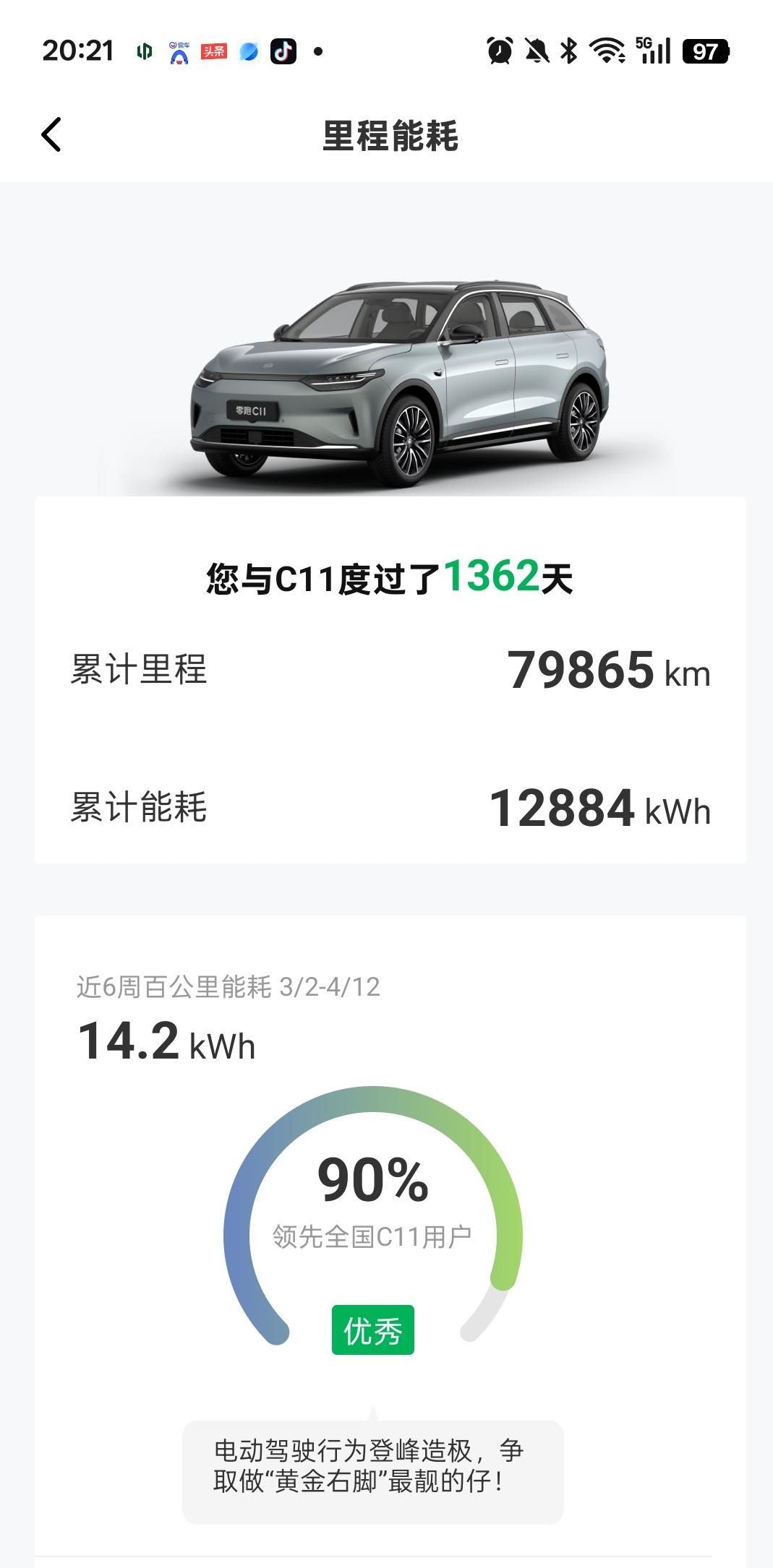 先说说我的情况。我现在开的是零跑C11纯电22款510豪华版,到今天已经用了1362天,跑了79865公里。三年多、近八万公里的纯电深度体验,让我对电动车的优缺点门儿清。我家里有固定车位装了充电桩,一年跑两万多公里,电费加起来不到1500块钱。这个成本有多低?开油车的朋友可以算算,同样的里程,油费起码一万五往上。所以这次换车,我的需求非常明确:纯电、六座、续航500公里以上的大型SUV。增程?不存在的,我有家充桩为什么要背着个发动机跑?