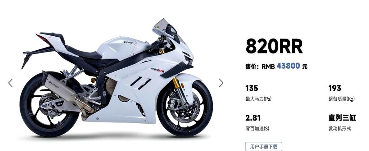 官方资料显示,张雪820RR搭载其自研的819cc直列三缸发动机,最大马力135匹,最高转速可达16000转,零百加速2.81秒,极速280公里每小时,售价43800元,但要求购买者驾龄需满一年。在WSBK夺冠之后,张雪机车A股相关公司股价大涨。