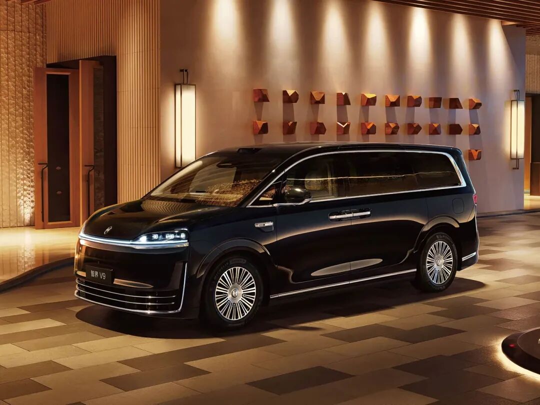 智界V9是智界汽车旗下首款MPV,也是鸿蒙智行旗下首款MPV,长宽高分别为5359/2009/1879mm,轴距3250mm,采用2+2+2六座布局,综合续航最高1250km以上,配备鸿蒙智能座舱、华为乾崑辅助驾驶、新一代DLP投影大灯、后轮转向等多项智能化配置。动力方面,智界V9搭载1.5T华为雪鸮智能增程系统,增程器最大功率为115千瓦,提供53.352/51.975/37.017/36.019/53.352/51.975kWh电池组,纯电续航里程分别为210km、158km、223km,综合续航里程最高可达1250km+。
