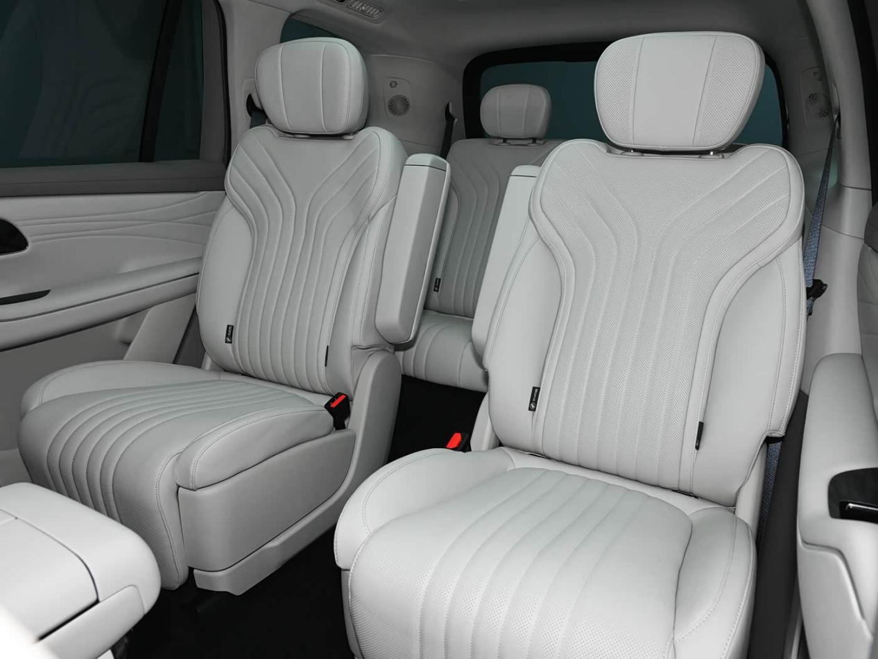 二排配备双零重力座椅,支持16向电动调节与横滑功能,乘客可根据需求灵活调整坐姿与间距。支持一键开启121度零重力模式,座椅自动调节至合适角度,配合一体式双云感腿托,可有效分散身体压力,长时间乘坐不易疲劳,结合加热、通风和按摩功能,可以提供堪比头等舱的舒适体验。