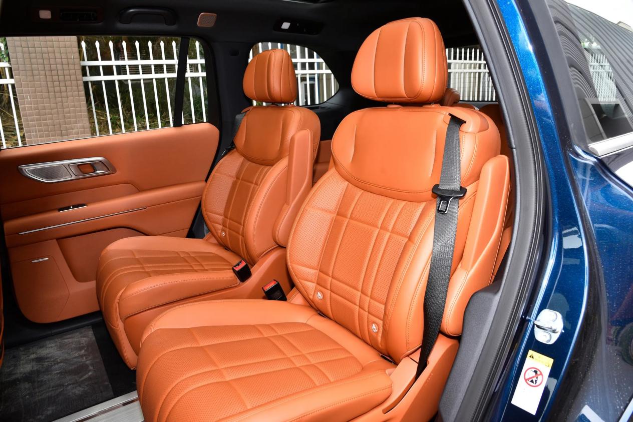 作为一款大六座SUV,深蓝S09的尺寸够大,长宽高分别达到了5205*1996*1800毫米,轴距3105毫米,空间表现突出。车内二排与三排座椅均提供充足的头部与腿部空间,满载不拥挤。采用2+2+2的6座布局,二排独立座椅中间是较宽的过道,方便进出第三排,适合多成员家庭使用。