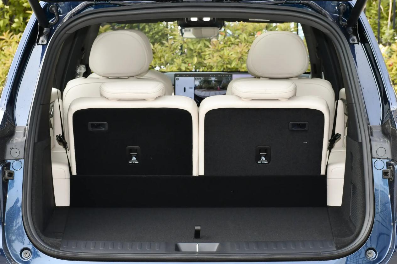 大尺寸6座SUV,车里面空间基本上都没什么毛病,但后备厢在满载状态下,都不算大,深蓝S09这块做的不错,在标准模式下,后备厢容积有427升,能放得下七个标准尺寸的行李箱,满足全家出游的行李装载需求。值得一提的是,后备箱底部设计有下沉式隐藏空间,容积有44升,可用于存放工具、应急物品或其他不常用行李,保持后备箱整洁有序。这一设计在同类车型中较为少见,极大提升了空间利用的灵活性。