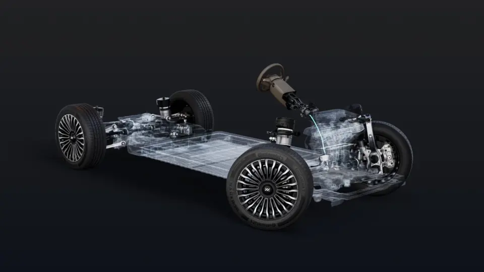 咱们先从这个最炫酷的“全线控转向”说起。传统车的方向盘和车轮之间是硬连接的机械结构,而线控转向,就像从“直板功能机”升级到了“智能触屏手机”,方向盘和车轮之间是电信号沟通。带来的好处是什么?第一是灵活,这台大块头的最小转弯半径能做到4.95米,堪比小车,在老城胡同里掉头,可能比一些中型SUV还轻松。第二是精准和智能,它能让后轮与前轮同向或反向转动,高速变道时车身像平移一样稳,再配合上那套三电机矢量四驱(前一个电机,后两个电机),每个后轮都能独立、精确地控制动力输出。这意味着在雨雪湿滑路面上,它的四个轮子能像经验丰富的老司机一样,自己找最佳抓地力,车身姿态控制得更稳当。所以你看,这些技术不是为了让你飙车,核心是为了让这个“大平层”开起来更稳、更安全、更不像司机。