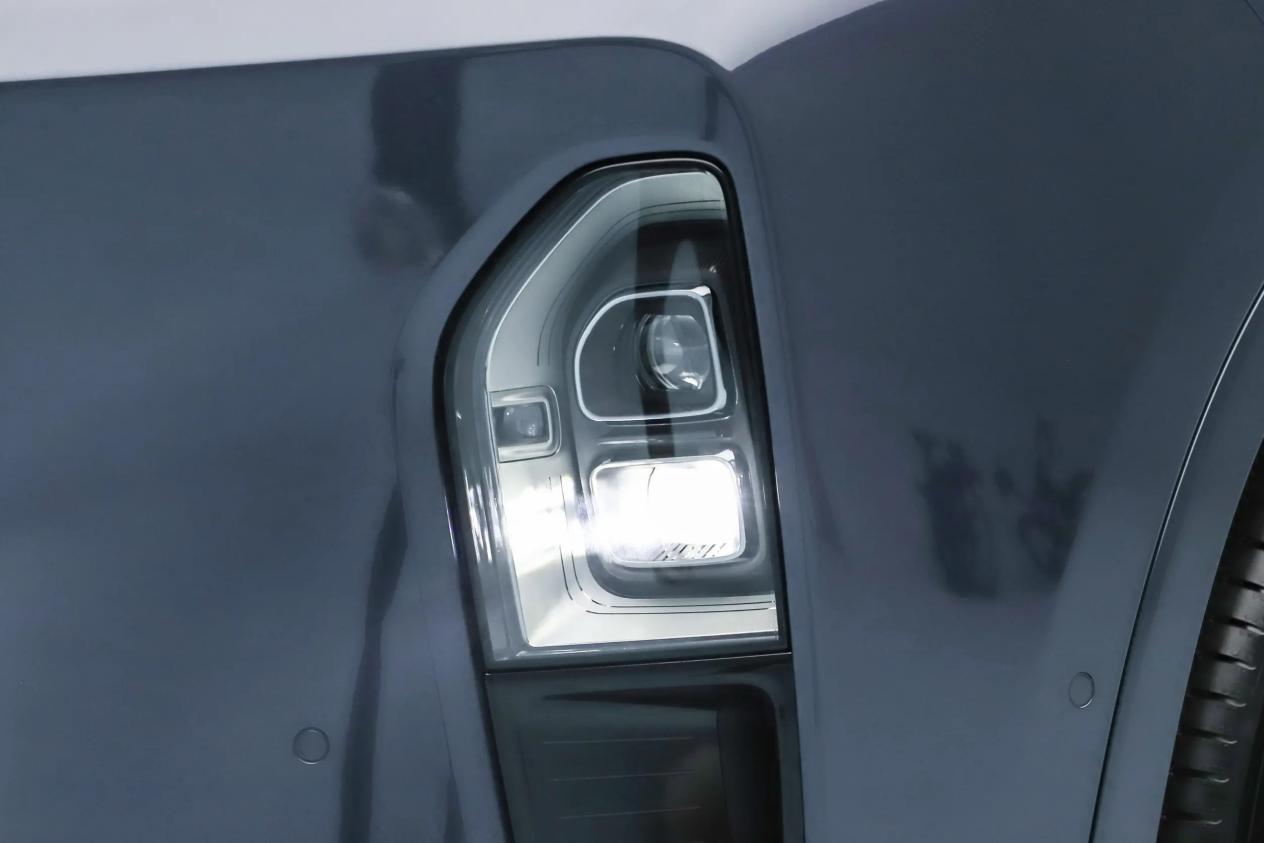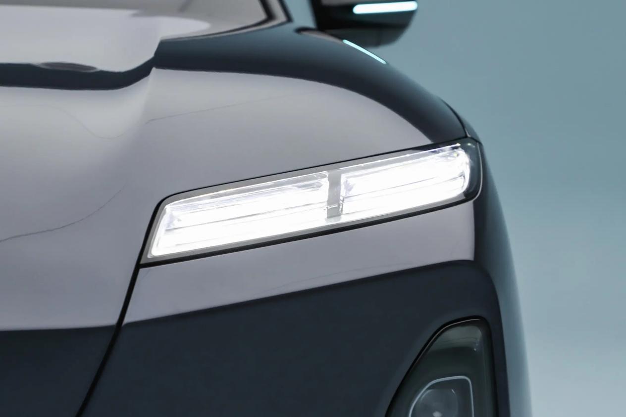 车头部分相比前代显得更加高大简约,采用封闭式格栅和分体式大灯组,上半部分是LED日行灯,下半部分是像素矩阵式LED大灯组,并加入更多迎宾效果,支持3套迎宾灯效、3套迎宾投影以及2个投影灯光秀,智能高清投影大灯HDPL照射范围拓宽至6车道,夜间行车更安全,并且支持FOTA持续进化照明能力。