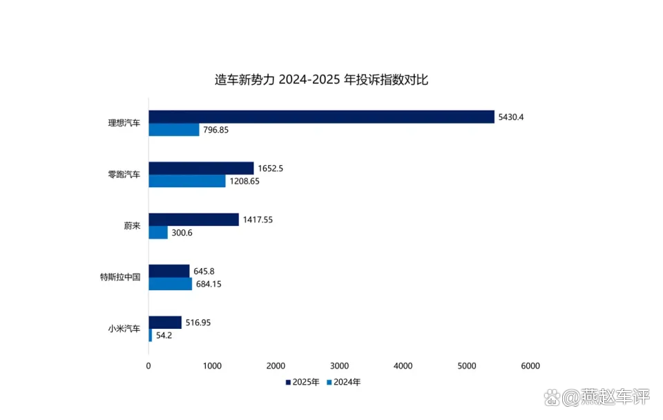 A10上市前一个月,汽车门网发布的2025年度投诉报告显示,零跑汽车投诉指数达1652.5,同比增长37%,位列新势力投诉榜第三位。这一数据有明确依据,2024年零跑销量亮眼、拿下新势力销冠的同时,投诉量也随之有所上升。具体来看,投诉主要集中在车身电气与服务层面,即车辆偶有小故障,且部分场景下厂家与经销商的处理效率有待提升。