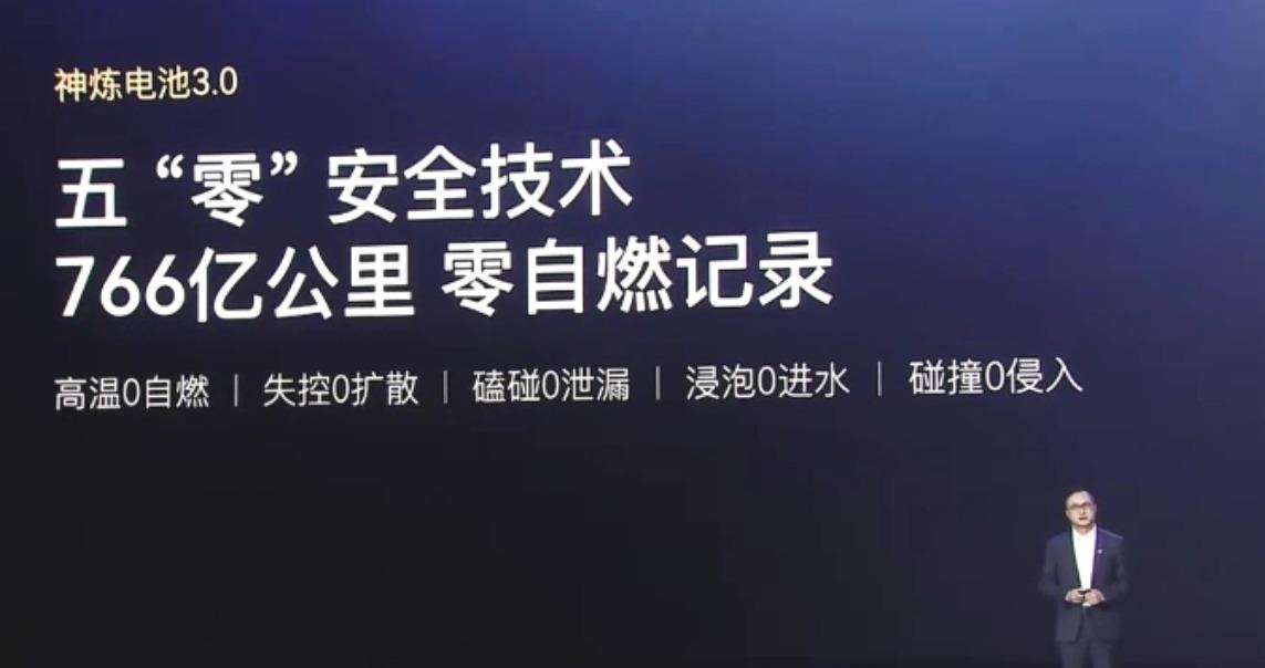 第二个顶级标签,是“宁德时代神炼电池3.0”。发布会上反复强调,华境S搭载的是宁德时代的超级增·混磷酸铁锂电芯。宁德时代的磷酸铁锂技术确实已经非常成熟了,但这次他们喊出了一个惊人的口号:系统级五“零”安全,并且达成了766亿公里零自燃的实战记录。766亿公里,这个数字是什么概念?相当于绕地球赤道跑190多万圈,或者从地球到太阳来回跑25趟还多。虽然不知道这个数据是怎么统计出来的,但敢这么公开说,底气应该很足。