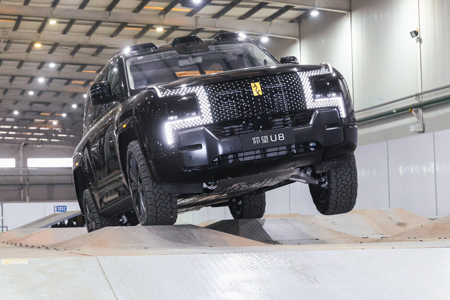 注意,这真不是AI特效,而是迪子把天门山、成佛坡、45度魔鬼坡……全1:1复刻之后搬进室内了,12000平米,100多种极限场景,这就是刚刚亮相的综合越野开发中心,往后不用等天气、不用到处找路,室内玩转极限越野成了现实。在央视镜头里,仰望U8 2026款越野的试炼挑战也在这里展开:爬“天门山”天梯无难度,而且倒爬比正爬还要丝滑;45度可变坡道正爬倒爬都轻松,还能悬停,还可以反复半坡起步,得益于易四方、云辇-P+、eTCS 2.0等核心技术,越野这件事变的更简单了!驾驶员啥也不用干,不用锁差速锁,不用选模式,车自己识别路面、自己调扭矩。eTCS 2.0让每个轮子独立思考,打滑的瞬间动力就切给有附着力的轮子,往后越野时你只管踩电门,剩下的交给车就行了。