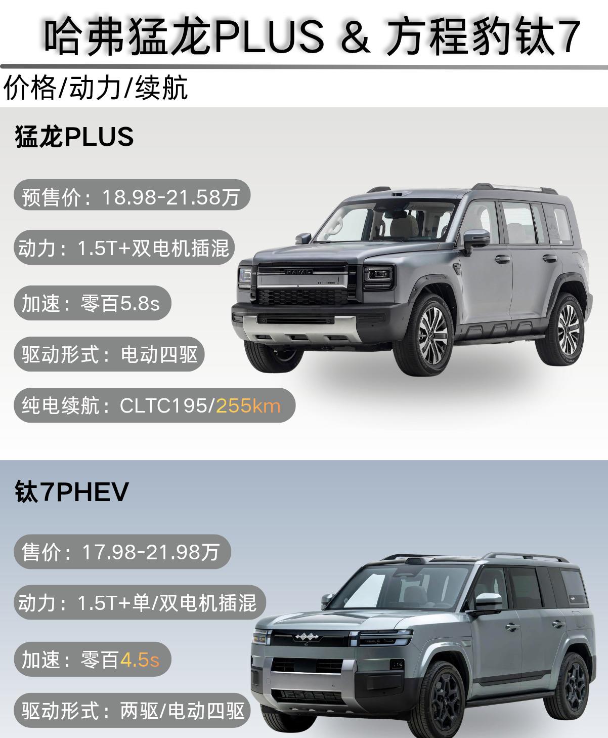 钛7现在的终端价格非常坚挺,而且已经有了庞大的车主口碑作为支撑,买它是个稳妥的选择。而猛龙PLUS刚刚开启预售,18.98万的起售价,其实比钛7的17.98万入门版要贵一万。但别忘了,猛龙PLUS是全系四驱,而钛7的17.98万版本是两驱。如果拿四驱版本来比,钛7的四驱版起步就要20万以上了。