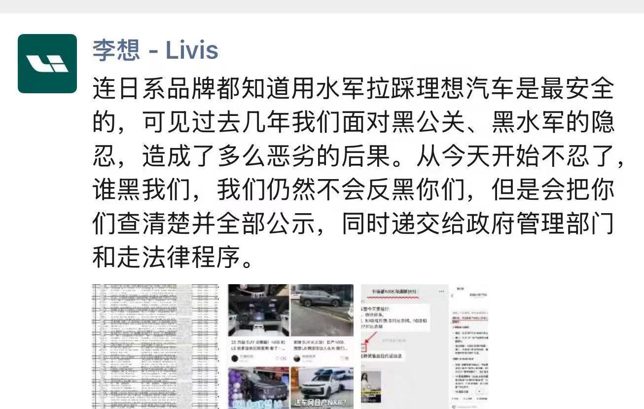 理想汽车这次不只是嘴上说说,法务部直接下场了。根据理想汽车法务部晒出的统计信息,在NX8上市后,网络平台上集中出现大量将理想i6、理想L6与NX8进行不当对比、恶意拉踩的贴文。这些内容大多以“买车二选一”为模板,高度同质化,且发文IP地址与发布时间异常集中,呈现出明显的组织化痕迹。理想汽车表示将通过向公安机关报案、向监管部门举报及提起诉讼等法律途径追究责任。有汽车公司市场部人士向媒体表示,经销商做竞品对比非常正常,厂家一般都会给门店准备话术、卖点提炼和对比材料。但“正常对比和组织黑水军拉踩是两回事”——前者是基于公开信息做产品比较,后者是利用批量账号、统一文案和虚假内容引导舆论,甚至冲击对手评论区。这个边界在哪里,可能就是这次事件的核心争议点。