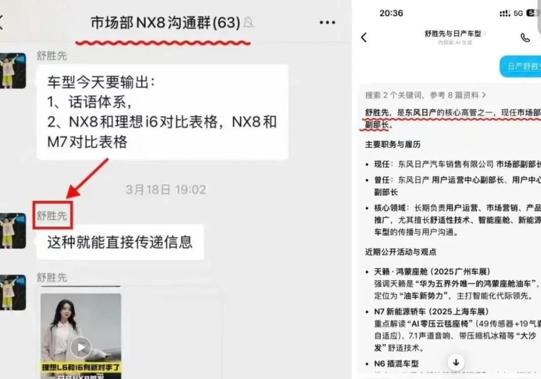东风日产为什么这么拼?因为实在是走投无路了。数据显示,东风日产销量已经连续第七年下滑,2025年全年只卖了60.1万辆,还不到巅峰时期131.69万辆的一半。更可怕的是产品结构严重畸形,轩逸一款车就占了总销量的53%。新能源转型产品N7,曾经月销破万,到2026年2月只剩587辆。在这种背景下,NX8被寄予了“全村最后的希望”的厚望。东风日产内部给经销商的培训材料中,明确写着“向上对标理想,增程替代燃油”等表述,甚至出现“比理想更懂家用”的营销话术。在“市场部NX8沟通群”里,也有要求提出要输出NX8和理想i6、问界M7的对比内容。发布会现场更是多次提及理想汽车,用了“曾经理想摸着e-Power过河,今天东风日产致敬理想,打造更理想的20万元级家用SUV”这样的表述。东风日产首席产品官尚顺事甚至放话说,两者不是“硬蹭”,而是“门当户对”。
