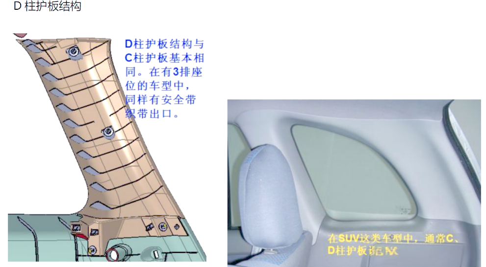 立柱护板,根据其成型工艺,可分为纯注塑件与面料包覆件两大类。面料包覆件进一步细分为面料热压复合件、植绒件和低压注塑件等。在汽车制造中,这类面料包覆件常被用于A、B、C、D这些与顶棚紧密配合的部件上。例如,A、B、C柱护板的表面常常植绒,这在中高级轿车中颇为常见,不仅能提升内饰的舒适度,还能起到一定的吸音作用。而门槛护板等部件,则通常采用纯注塑件工艺制造。