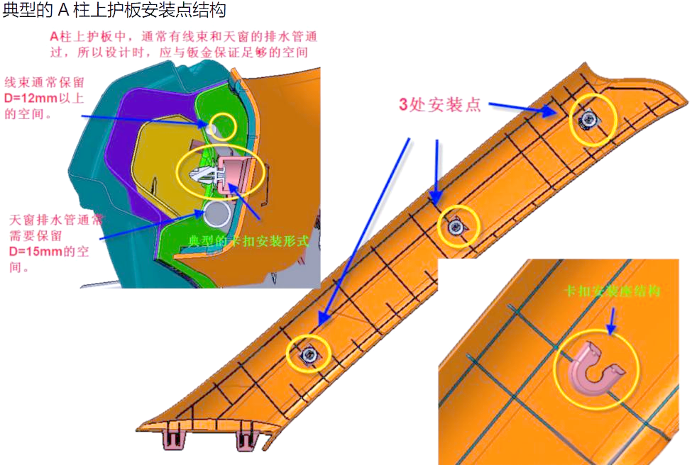 关于典型材料与厚度,立柱护板侧通常推荐使用填充了橡胶和滑石粉的聚丙烯。这种材料的厚度会因工艺和用途的不同而有所差异,但在低压注塑工艺中,总料厚通常设定为2.5毫米。