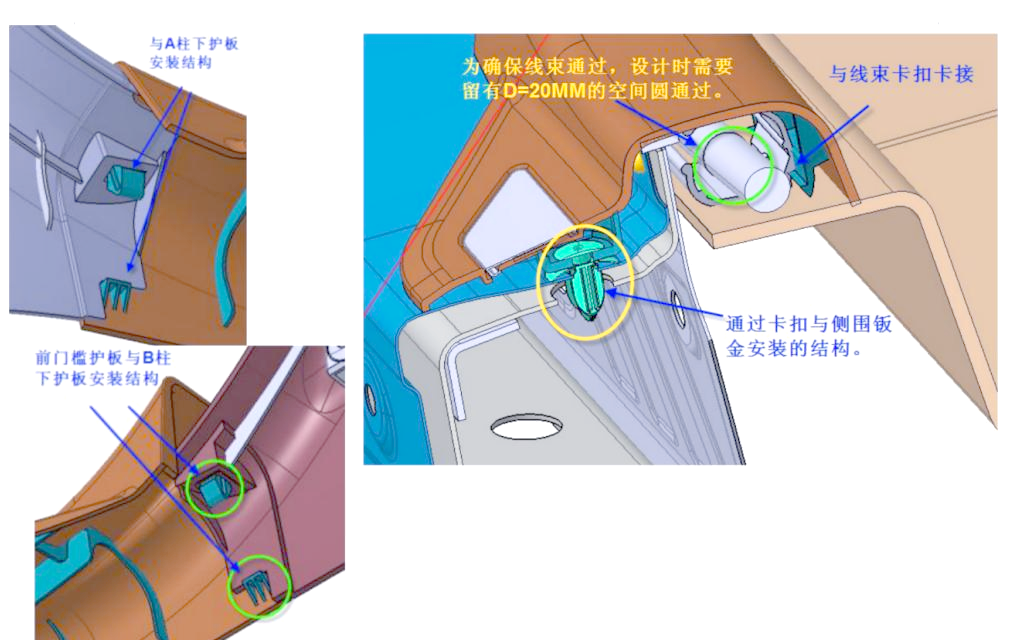 汽车侧围内饰护板总成涵盖了多个关键组件,如A柱上护板、A柱下护板、B柱上护板等,它们共同构成了侧围内饰护板的完整体系。这些护板不仅有助于提升乘客区的舒适度和美观性,还能对车身钣金、线束以及安全带等关键部件起到持久的保护作用,确保其经久耐用。